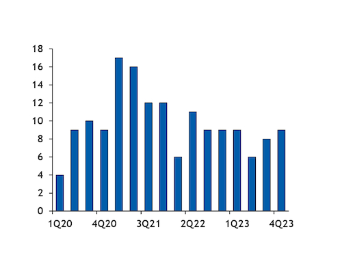 LNG carrier deliveries are expected to slow from the third quarter, with 12 scheduled for both the third and fourth quarters of this year, before slowing further in 2022-23.