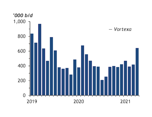 And the outlook for long-haul Urals exports looks uncertain as the Opec+ group further unwinds its production restraint agreement in May-July. Urals cargoes found their way to rare outlets in northeast Asia after the group's production cuts were introduced last year, as regional buyers such as Japan and South Korea were left with reduced availability of their usual Mideast Gulf medium sour base-load grades. A rise in the supply of Mideast Gulf crude in the Asia-Pacific market could eat into any market share Urals was able to gain when availability was curtailed. But a return to pre-pandemic demand from China could still help offset any easing in Asian interest. Urals exports to China in May have already matched total shipments in January-April and could rise further.