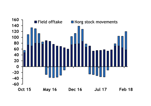 Norg injections had to be directly from the field in the past two years, as part of the site's leaning process.
