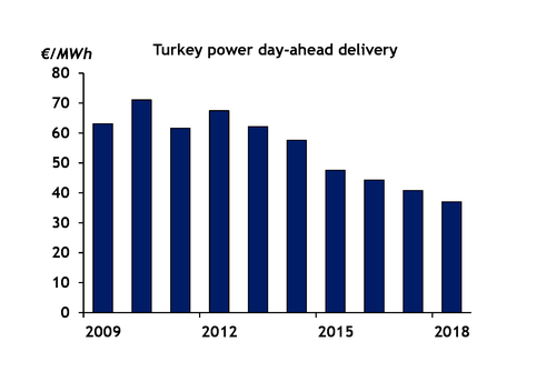 OMV's decision to sell its generator comes as the increase in gas tariffs and weaker power prices in euro terms has pressured the profitability of gas-fired units in Turkey. The outlook for regulated gas tariffs rose in recent weeks as the lira fell to fresh lows against the dollar and crude prices gained. The weaker profitability outlook stalled most gas-fired projects as none of the firms with generation licences for gas units above 200MW of capacity started construction. Only a couple of gas-fired projects had completed preparatory processes as of January 2018, the regulator EPDK reports showed.