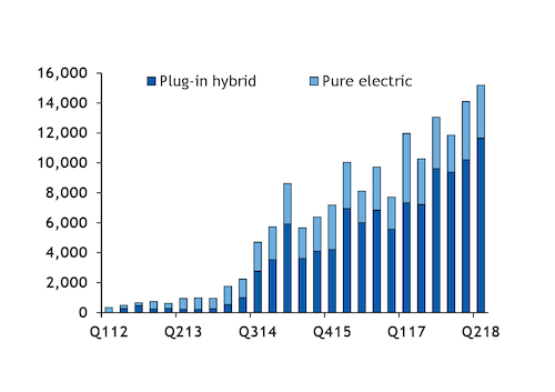 Registrations of hybrid and electric vehicles totalled 91,069 in January–August, up by 27.4pc year on year, according to the SMMT. Registrations in August were 88.7pc higher than in August 2017. Most carmakers that do not already have EVs on the market plan to introduce models in the next two years, which will further increase sales and demand for batteries.