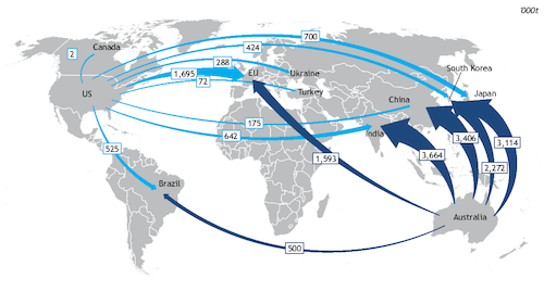 The US exported 22.45mn t of coking coal to Europe in 2018, a 40pc share of its total shipments, according to the US census bureau. This crept up to 44.4pc in the first quarter of this year, with 5.6mn t delivered to Europe.