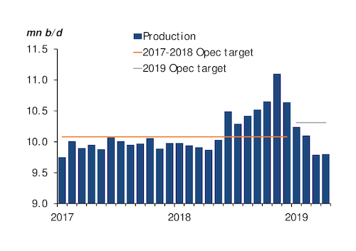 The Joint Ministerial Monitoring Committee (JMMC), co-chaired by Saudi oil minister Khalid al-Falih and Russian energy minister Alexander Novak, opted on 19 May to defer making any formal production policy recommendations, citing "critical uncertainties" affecting markets and macroeconomics, the trade dispute between the US and China, monetary policy and "geopolitical challenges".