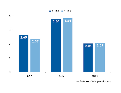 Lower passenger car demand was not relegated to the two largest US suppliers. Car sales were down for 14 of the 17 producers in the first half, with double-digit declines in more than 60pc of those companies.