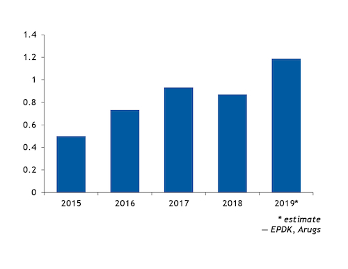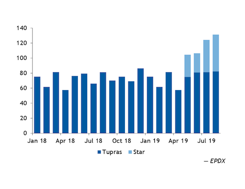 Star expects annual production of 700,000t when operating at capacity, on par with Tupras' capacity. This suggests there is scope for output to increase to 1.4mn t in 2020, if cokers at both refiners operate at full rates. And it could rise even higher, given Tupras' output has been well above nameplate over the past two years (see chart).