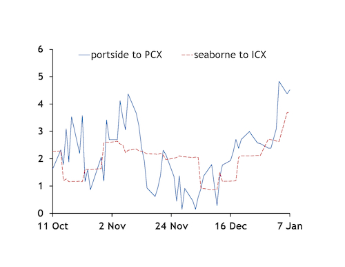 BRBF traded at $96/dry metric tonne (dmt) on 6 January, at $94.35/dmt on 2 January and $91.65/dmt on 27 December, expanding its premium to the ICX at $94.25/dmt, $92.90/dmt and $90.50/dmt respectively on those days.