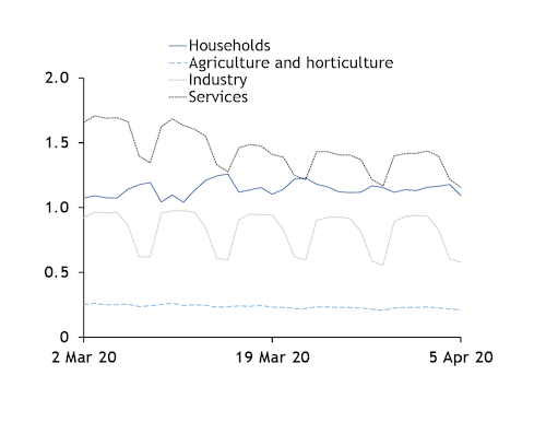 Energinet reviewed electricity consumption data across several sectors in Denmark for the period of 2 March–5 April.