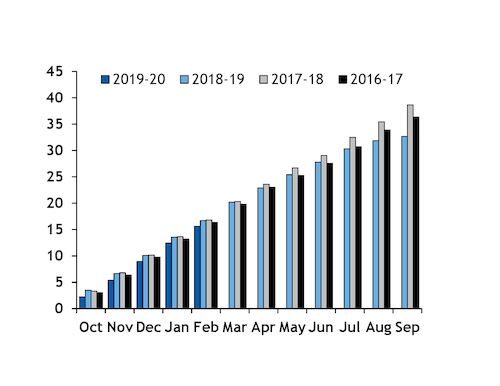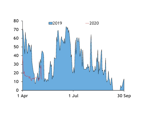 Troll production staying weak over the remainder of 2020 suggests that output could fall well short of the 36bn m³ quota for this gas year, after 2018-19 output had been well below the 38bn m³ permit (see graph).