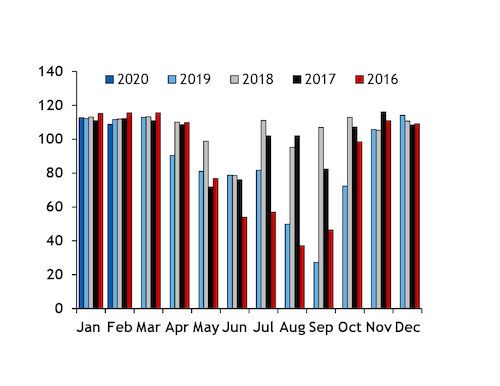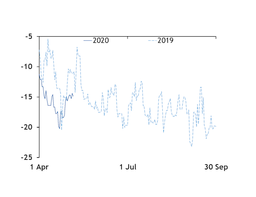 Northwest European prompt prices have held a wide discount to forward contracts so far this year, providing an incentive to defer production. And NBP and TTF prices have moved into an even steeper contango in recent weeks, as social distancing measures to contain the Covid-19 pandemic have cut into weather-adjusted consumption and LNG imports have stayed quick. And storage facilities across Europe entered the summer at their fullest in recent years, which would have curbed summer injection demand even before accounting for coronavirus.