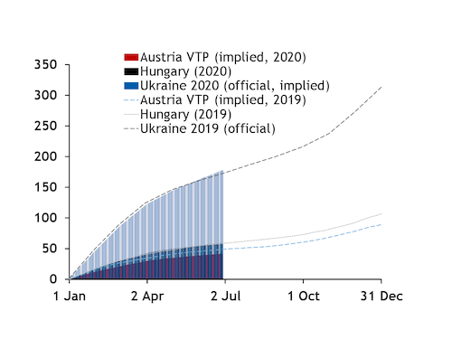And online sales for delivery this summer have been strong so far. Gazprom had sold 9.49bn m³ as of 23 June, already higher than the 8.37bn m³ sold for all of last summer (see online sales data & download).