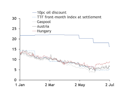 And they could make a smaller contribution relative to sales under oil-indexed contracts, given that European prompt prices have opened up a wide discount to the price of oil-linked supply assuming a 10pc discount (see price graphs).