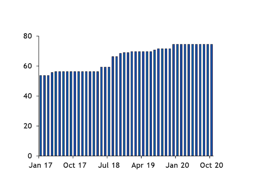 Assuming no additions are made in the coming months, the country could import up to 19.4mn t of LNG in the fourth quarter and 18.9mn t in the first quarter of next year. This would still leave fourth-quarter volumes in line with previous expectations and overall LNG deliveries higher this winter than a year earlier. China's LNG imports have surpassed nameplate import capacity during peak demand periods over the past three winters (see LNG import capacity utilisation chart).