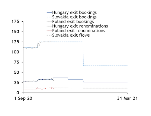 Firms made some withdrawals during the last 10 days of October, with shipments to Hungary climbing above capacity booked prior to the month. This may have been in response to capacity constraints along the Hag pipeline on 21-29 October.