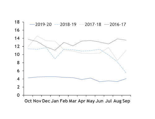 Since the Tyra complex halted in September 2019, Denmark and Sweden have been reliant on imports from Germany and storage withdrawals to meet their demand. Danish imports at Ellund were 76.6 GWh/d on 1 October-5 November, slightly lower than a year earlier but reversed from flows in the opposite direction over the period in 2018.