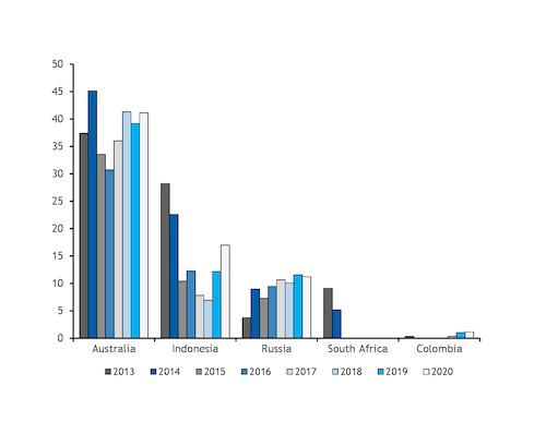 At least two Capesize cargoes of Colombian NAR 5,500 kcal/kg coal were sold recently to Chinese buyers at undisclosed prices. Another Capesize cargo of Colombian NAR 5,800 kcal/kg coal was offered to China at $44/t fob for loading in the first quarter of 2021. Colombian coal is rarely sold to China because of long shipping distances, unless Australian coal prices are particularly strong. In this case, Beijing's curbs on Australian coal have left Colombian coal more attractive than usual to Chinese buyers.