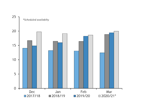 A similar dynamic is likely to unfold this winter, with coal burn set to be determined by the level of physical capacity that is available for use. But with nuclear availability scheduled to be 4.9GW and 3.2GW higher than actual output last year in December and January, respectively, and flat in February, the power system may have enough flexibility to accommodate even more stringent restrictions this winter.