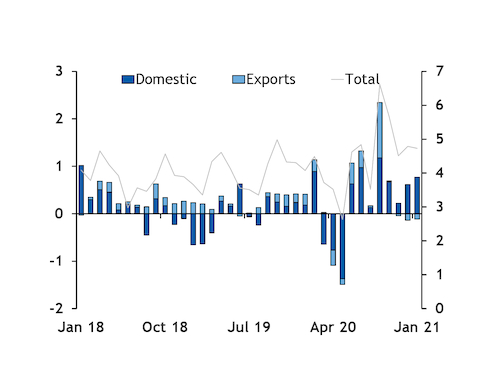 In the electricity sector, coal-fired power generation rose by 5.8pc on the year to 2.3TWh in January, outstripping a 4.3pc rise in overall electricity output to 7.9TWh, based on energy regulator Nepra's figures. The higher coal-fired output helped offset a 3.6pc dip in LNG-fired generation.