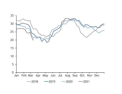 Availability of South African coal — which typically comprises only a small part of the east Asian supply mix — has also been tight early in 2021, because of domestic railing issues.
