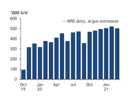 Some North Sea crude traders favour the inclusion of Norway's Johan Sverdrup into the basket of benchmark crudes. Johan Sverdrup is the only asset produced locally that is likely to be able to offset declines at other streams. Output was over 420,000 b/d in 2020, data from the Norwegian Petroleum Directorate show. And production is poised to climb after Norway's Equinor and its partners unveiled plans to increase the field's phase 1 capacity to 535,000 b/d by the middle of this year. Phase 2 of the development, which will lift capacity to 720,000 b/d, is due on stream in the fourth quarter of 2022.