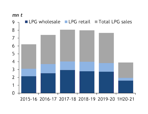 The higher sales could boost the company's gross profit by 3bn yuan/yr ($460mn/yr), it says, up from a Yn13.4bn profit in fiscal year 2019-20 ending in March. Residential LPG demand in China's urban centres is facing growing competition from an expanding natural gas network.