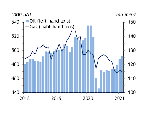 Argentina's oil and gas production was already flagging before the protests began. Crude output totalled around 490,000 b/d in the first two months of 2021, down by 5pc from a year earlier, energy secretariat data show. Gas flows fell by 11pc to 115mn m³/d over the same period.