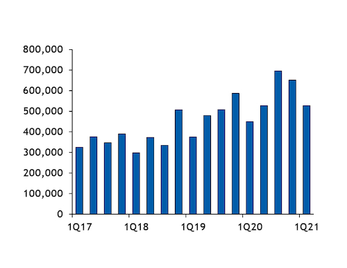 Russia exported 527,000t of pellets in the first quarter, up from 450,000t a year earlier. Exports also hit a new March high, at 190,000t, up by 25pc on the year.