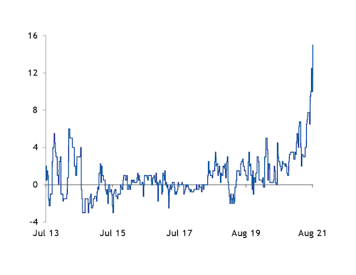Additionally, a recent resurgence in Covid-19 cases is contributing to port congestion in China, as Chinese officials adopt stricter quarantine measures. This is adding increased uncertainty on total freight costs as long wait times can run up high demurrage. Many Chinese ports are requiring ships to wait to berth until at least 14 days have passed from their last port of call. At least one terminal is requiring a quarantine of 28 days. And China's second-largest container port, Ningbo-Zhoushan, was forced to close one of its terminals on 11 August after a worker tested positive.