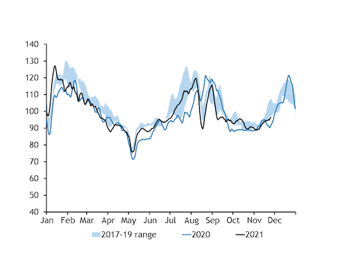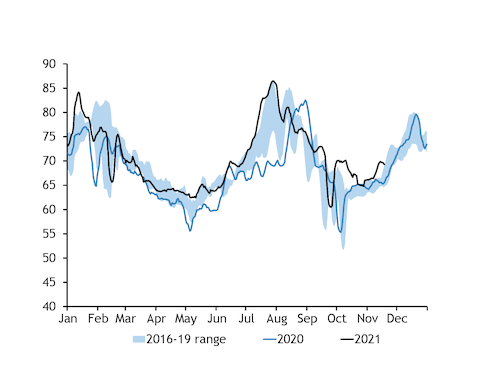 Firmer-than-expected nuclear availability will help the country meet peak winter power demand, while winter is expected to be colder this year across Japan's southern regions. The Japan Meteorological Agency projects a 50pc chance of below-average temperatures for the Kyushu, Shikoku and Chugoku regions and a 40pc likelihood for the Kinki, Chubu and Kanto regions for December-February, according to a forecast issued on 24 November.