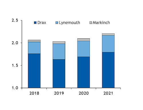 UK's biomass-fired generation is due to rise to 2.2GW on an hourly average — assuming output for all of December in line with the average so far for the month — from 2.1GW a year earlier, which would be the highest for any year. And demand for pellets will increase further in 2022 as UK developer MGT's Teesside 299MW dedicated combined heat and power (CHP) plant is expected to start operations on 17 January. MGT is expected to consume 1mn t/yr.