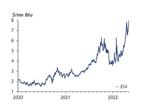 Russia's invasion of Ukraine led the Biden administration to adopt a "war footing" in the need to boost US oil and gas firms' output growth, but "Wall Street is constricting their ability to invest in increased production", Granholm says. US upstream independents enjoying a surge in profitability from higher oil and gas prices continue to prioritise shareholder returns while restraining investment in new drilling. The surge in US LNG exports, which in March neared 12bn ft³/d (340mn m³/d) of natural gas equivalent, poses its own political risk in the form of rising US natural gas prices. Henry Hub futures contracts for June delivery settled at $8.78/mn Btu on 5 May, from less than $4/mn Btu at the start of this year.