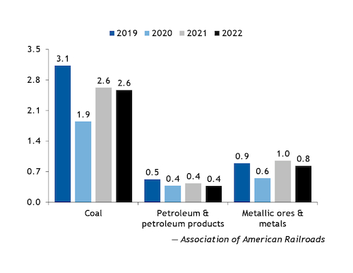 Coal volume dropped by 2.1pc in May to 256,842 carloads compared with the year-earlier period. Growth in coal traffic has been hampered by limited spot supply and rail service problems.