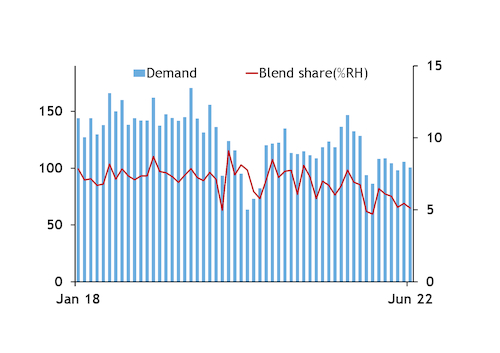 These figures do not track the reserve's reported data for June diesel consumption, which at 1.96mn t were close to level with the same month in 2021.