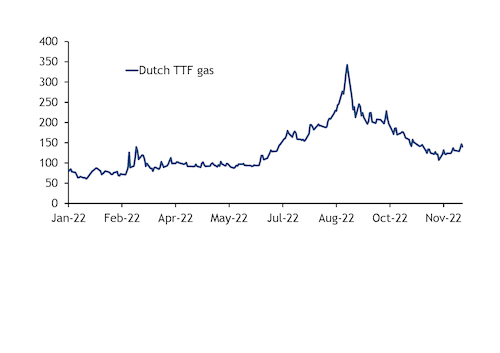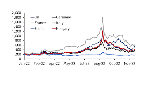 Czech gas-fired generation — which accounted for about 6.8pc of its generation mix so far this year — could come under pressure as gas forward prices remain high (see chart). Start-up tests at the 471MW Mochovce 3 nuclear reactor in Slovakia started in October and full commercial production is expected in early 2023. Polish TSO PSE expects no limitation in coal stocks, supporting the outlook for coal-fired generation.