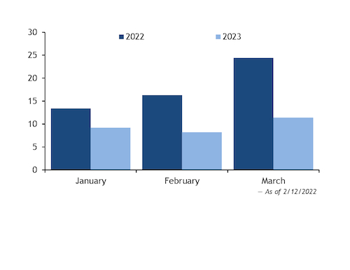 Nuclear unavailability during January-March 2023 is scheduled at 9.6GW as of today, which compares with 18.1GW during the same period this year (see chart).