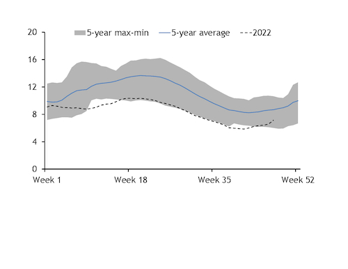 Supply will gain a boost if the long-delayed 1.6GW Olkilutoto 3 nuclear unit starts up as planned on 22 January 2023.