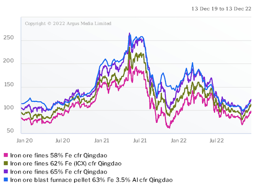 But the market began to swing in favour of these marginal producers in the final weeks of 2022. First freight rates and then the Australian dollar fell, cutting the cost of delivering iron ore to China. The lump premium (or, as producers see it - the fines discount) reduced and the prospects of China coming out of its self-imposed Covid-19 lockdowns saw the iron ore price complex start to recover.