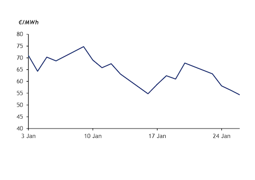 The Netherlands' TTF gas contract for front-month delivery moved below €50/MWh in February for the first time in nearly a year and a half.