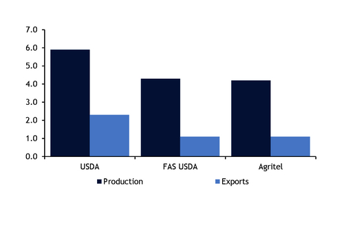Meanwhile, Argus' agricultural analytics arm Agritel anticipates Ukraine's barley production in the new season at about 4.2mn t, with the projected figure based on the projected harvested areas at about 1.3mn ha and the average yield of 3.16 t/ha. The production forecast can also be increased later, based on higher yields provided there is favourable weather in the upcoming weeks, Agritel said.