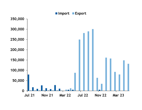 Butane arrivals in China reached 744,600t in June according to Vortexa, and imports are expected to remain elevated in the coming months as Sanjiang Petrochemical ramps up its new cracker and with butane expected to remain at large discounts to naphtha and propane. Import demand should be supported by healthier cracker use in July-December following maintenance season, while Befar Group's new 740,000 t/yr MTBE plant is due to launchin Shandong in the fourth quarter.