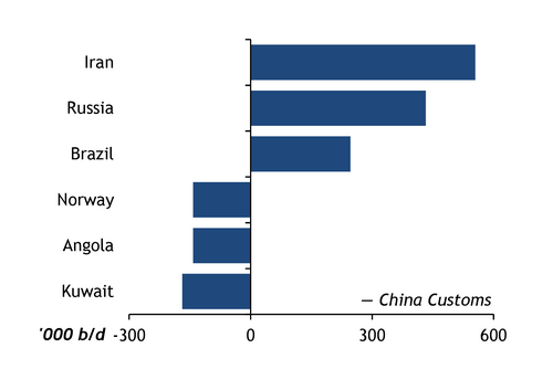 China: Crude imports Jan-Jul, '23 ± '22