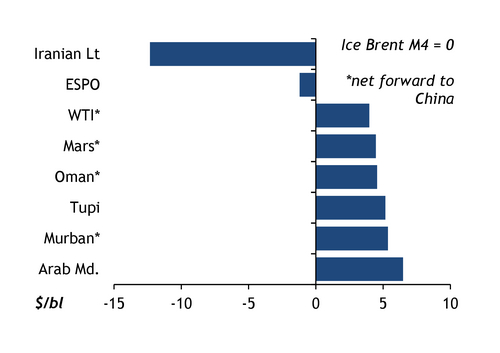 China delivered crude cost hierarchy