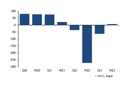 Biomass-fired units with CfDs have started up again as the base-load market reference price for the scheme will be around £128.75/MWh for winter 2023-24, Argus estimates, down from £207.07/MWh for summer 2023. Units had been paying back to the scheme when generating over the summer, making them unprofitable as delivery prices fell well below the reference price — with the N2EX day-ahead market delivering at £83.65/MWh over the season.