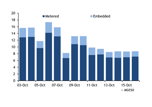 Biomass-fired availability will also increase next month once the 660MW unit 4 at Drax returns from an extended outage on 29 October. It is the second unit to undergo a major overhaul at the plant this year, with unit 2 off line in April-July. Drax's units 2-4 operate under the renewable obligation (RO) scheme rather than with CfDs, so have continued to generate over the last year.