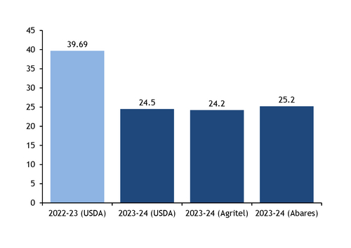 Stable conditions and stable soil moisture in NSW and SA in October may have improved producers' and exporters' outlook on production for 2023-24, despite pessimistic forecasts on the back of the El Nino shift (see chart).