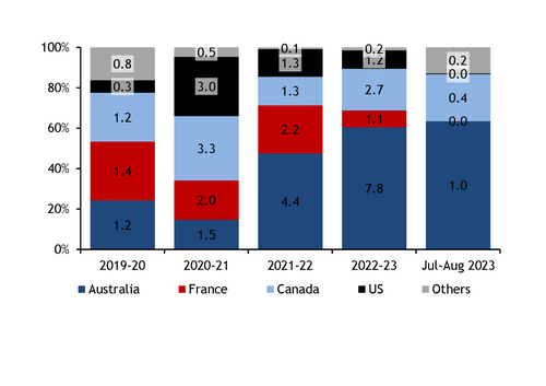 Australian competitivity, and the country's export capacity, could prove to be a key driver for French wheat prices in the second half of France's 2023-24 marketing year. French exporters' selling window could be short-lived as competitive Australian new-crop heads ever closer to market.