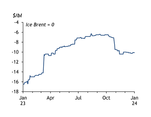 The prospect of more heavy crude supply from Venezuela has already weighed on Colombian crude, with heavy sour Castilla falling to a $10.40/bl discount to Ice Brent in mid-November, a seven-month low, and remaining fairly weak at around $10.10/bl below the marker in early January (see graph).