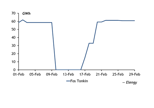 And sendout at Fos Tonkin halted on 10 February and is nominated to remain off line until 17 February. Regasification is then nominated to tick up gradually on 17 February, with the facility scheduled to next receive a cargo on 18 February (see Fos Tonkin graph).