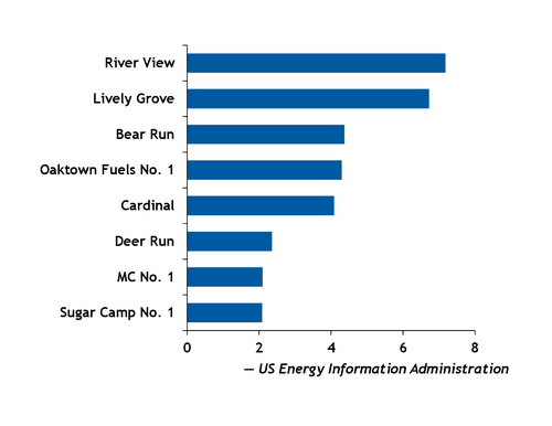 Alliance Resource Partners' River View mine in western Kentucky remained the top supplier to domestic utilities, even though shipments fell by 4.1pc compared with 2022. Utilities received a combined 8.7mn st of coal from River View, down by 376,874st in 2022.