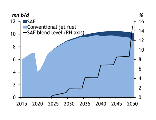 Sustainable aviation fuel (SAF) makes up a tiny amount of the 7mn b/d jet fuel market but is about to expand rapidly as environmental mandates take effect.