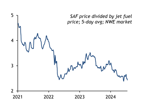 SAF price ratio to conventional jet fuel